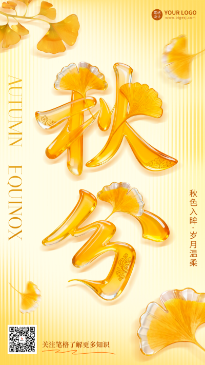 秋分玻璃艺术字祝福海报