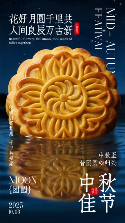 橙黄色中秋节创意海报