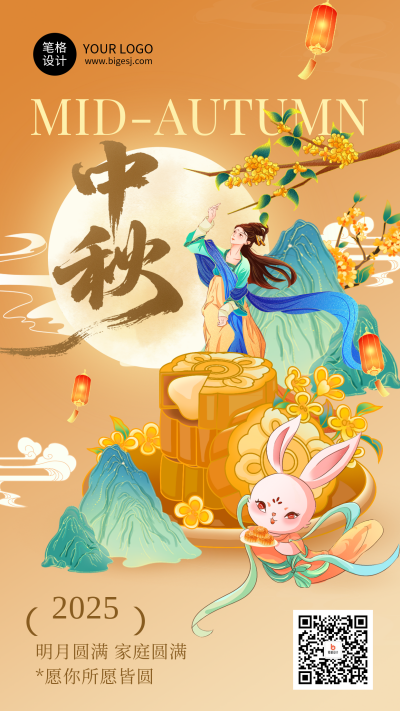 中秋节节日祝福国潮风简约海报
