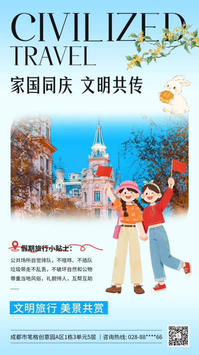 国庆中秋旅游出行宣传海报