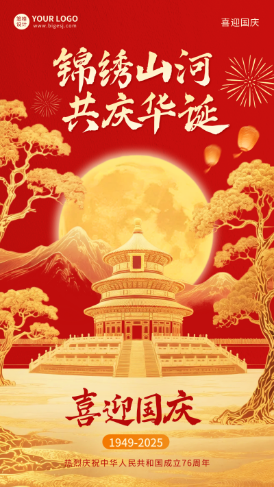 国庆节金箔质感祝福海报