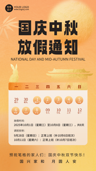 中秋国庆放假通知手机宣传海报
