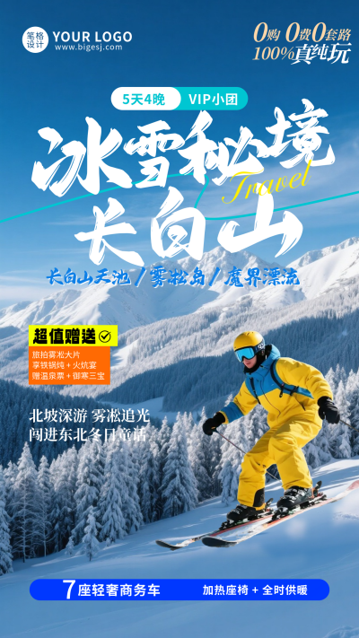 蓝色实景长白山旅游海报