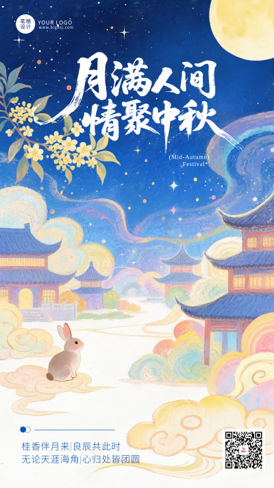 中秋节手绘可爱宣传海报