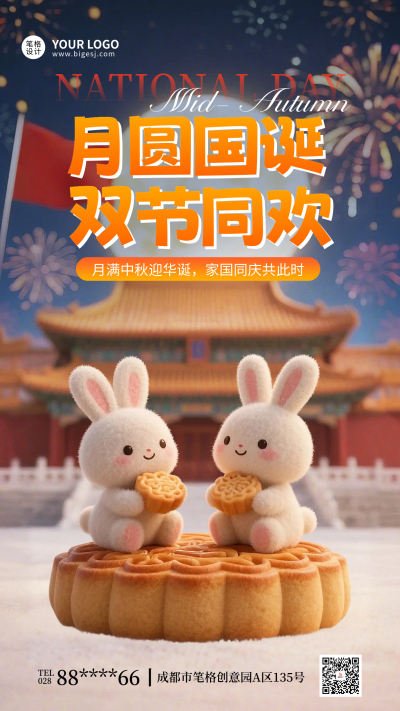 中秋国庆双节同欢祝福宣传海报