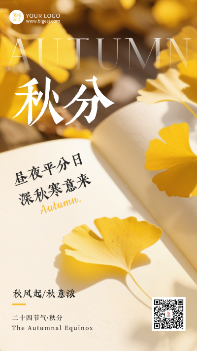 秋分节气简约日签手机宣传海报
