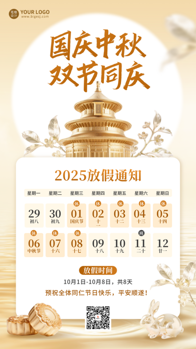 国庆中秋放假通知海报