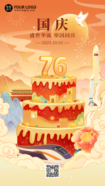 国庆节手绘蛋糕祝福宣传海报