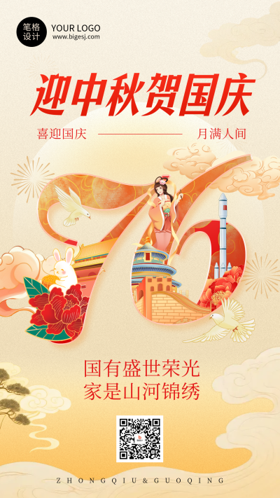 中秋国庆节简约国潮风祝福海报
