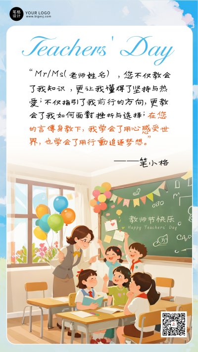 教师节简约手机宣传海报