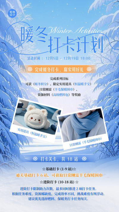 蓝色插画风冬季活动宣传海报
