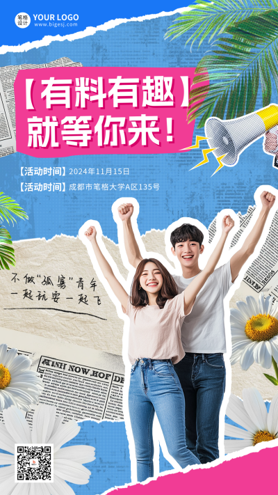 联谊活动趣味拼贴风宣传海报