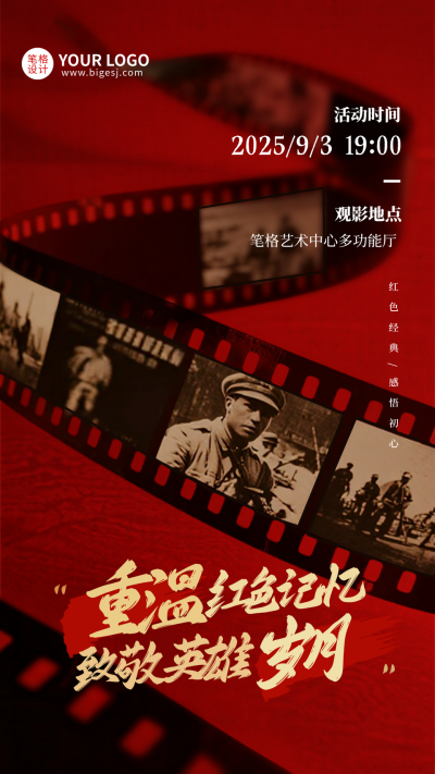 抗战胜利80周年红色观影活动手机宣传海报