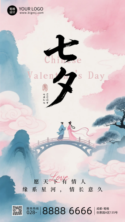 七夕节祝福宣传手机海报