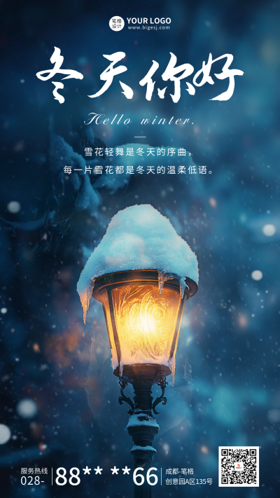 冬天你好路灯实景日签海报