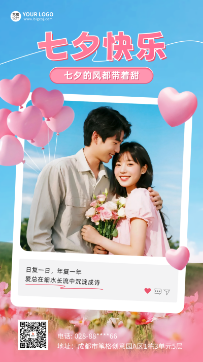 七夕快乐晒照祝福海报