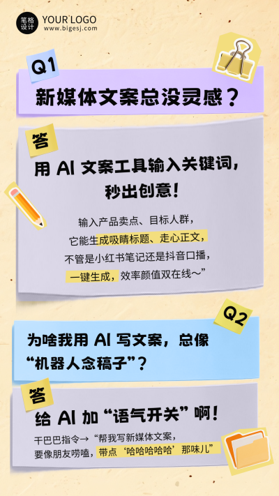 黄色简约AI工具使用指南海报