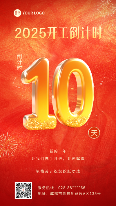 开工倒计时第10天喜庆手机宣传海报