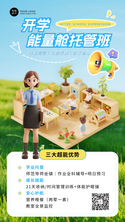 3D开学季课程宣传手机宣传海报