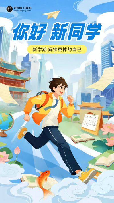 开学季祝福国潮风海报