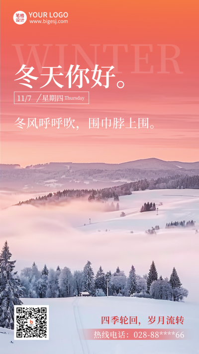 立冬实景日签问候语风景海报