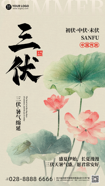 三伏天夏季手机宣传海报