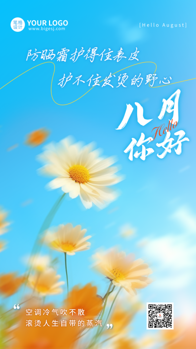 八月你好简约宣传海报