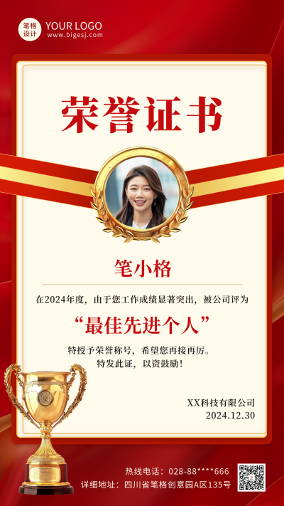 个人荣誉证书表彰海报