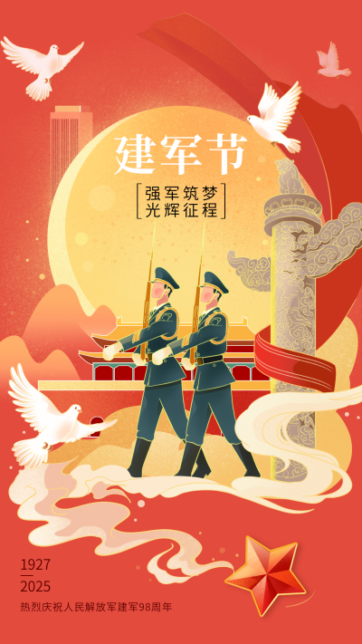 建军节喜庆手绘祝福宣传海报