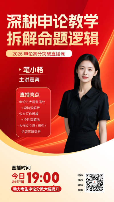 红色商务风机构申论课程直播海报