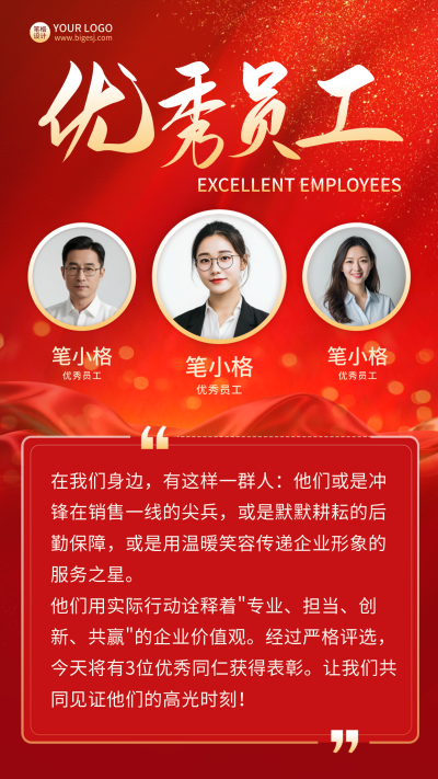 优秀员工表彰排行榜喜报竖版配图