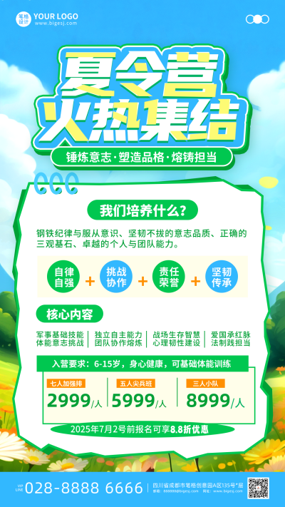 军事夏令营招生活动手机宣传海报