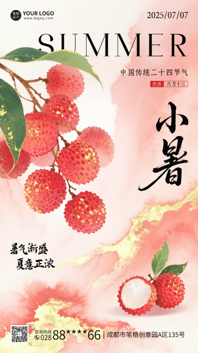 小暑节气手绘荔枝祝福海报