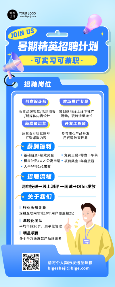 暑假兼职招聘蓝色简约长图海报