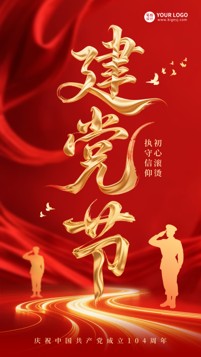 建党节大气艺术字祝福海报