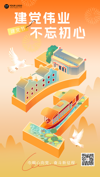 七一建党节手绘祝福宣传海报