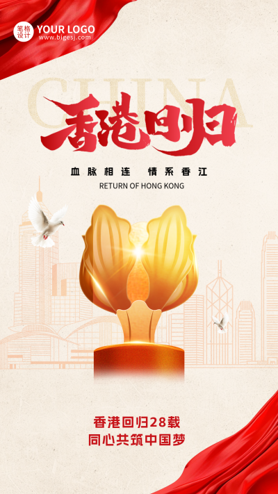 香港回归简约祝福宣传海报