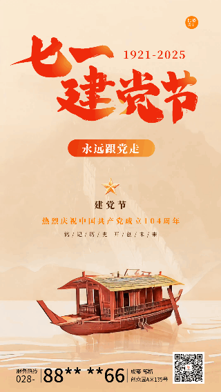 七一建党节红船精神宣传动态海报