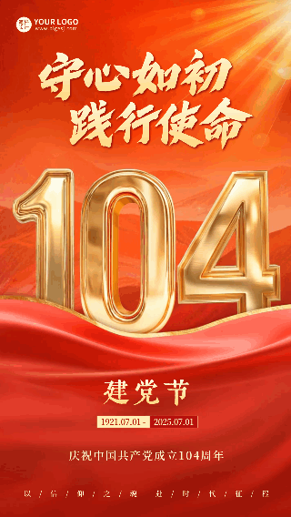 建党节红色大气祝福动态海报