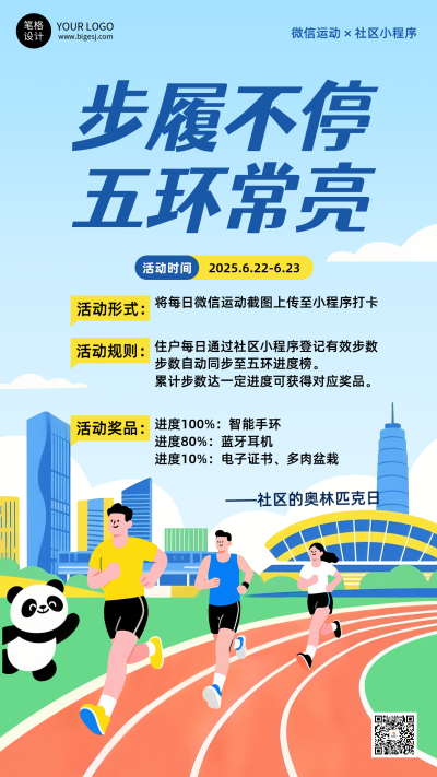 奥利匹克日活动宣传扁平手绘海报