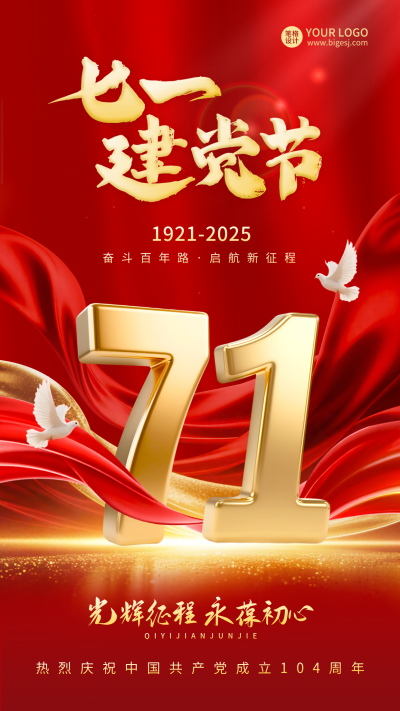 建党节大气红绸宣传海报