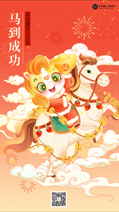 红色国潮风马年祝福宣传海报