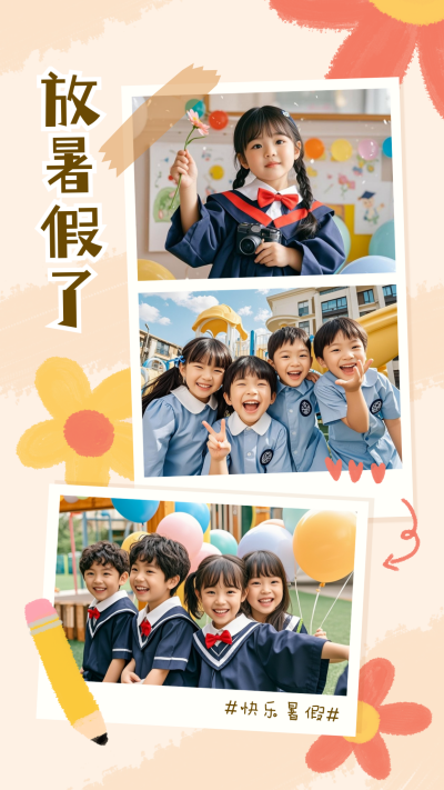 幼儿园暑假晒照毕业纪念实景拼图模版