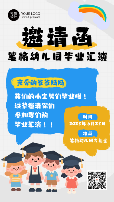 幼儿园毕业汇演活动邀请函可爱手绘海报