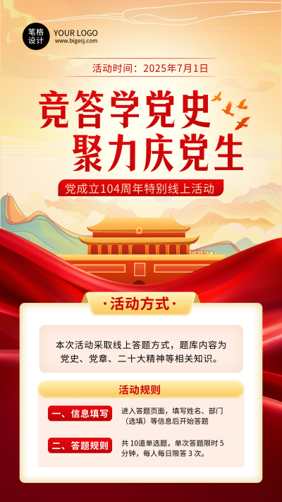 建党节活动宣传简约海报