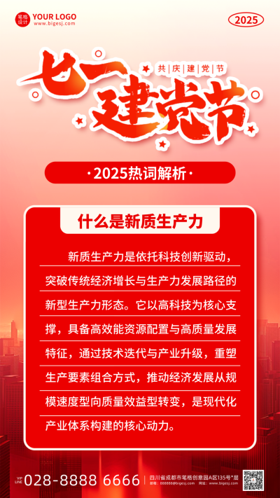 建党节热词解析知识科普手机宣传海报