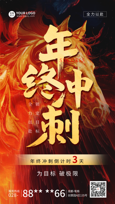 马年喜庆开门红年终冲刺倒计时宣传海报