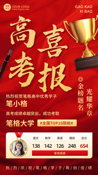 高考喜报红色喜庆祝福宣传海报