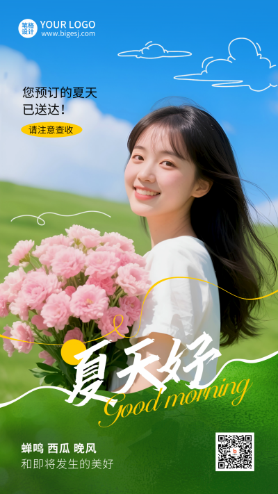 夏季你好日签问候语实景海报