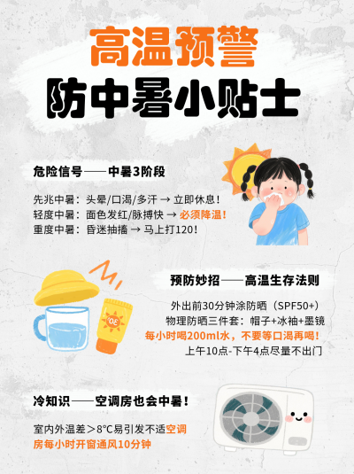 高温预警天气注意事项防中暑科普宣传小红书封面